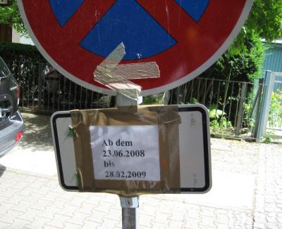 Im Dauerwaldweg, unmittelbar vor dem Wald, ist eine Fahrspur seit Ende Juni gesperrt. Die Sperrung läuft bis Ende Februar kommendes Jahres, also insgesamt 8 Monate.