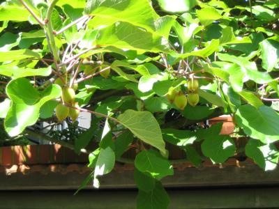 Herr und Frau Elsner empfingen mich in ihrem Garten. Das Besondere in diesem Garten sind riesige Kiwi – Pflanzen, die sich schlängelnd nach und nach die Terrasse und den Garten erobern. Die Erträge der 3 Pflanzen steigen von